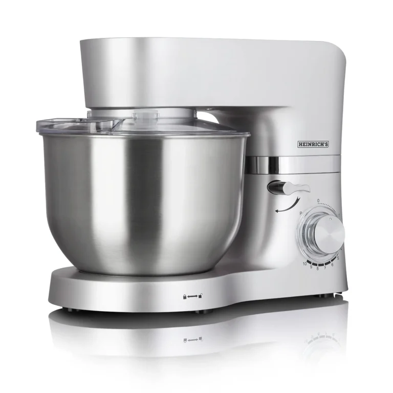 محضر طعام هاينريش HKM 6278 أخضر نعناعي، خطاف عجين، خلاط، 3 ملحقات، محرك 1300 واط، وعاء خلط من الفولاذ المقاوم للصدأ سعة 6.5 لتر XL، محرك معدني، مفتاح إضاءة، متوفر بعدة ألوان.